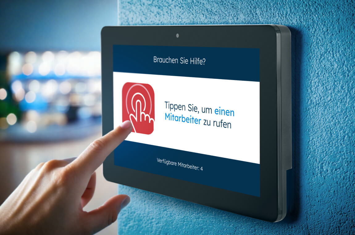 Alle Uhren lassen sich ganz einfach mit cPanels verbinden – intelligenten Tasten, über die Ihre Kunden Hilfe oder Beratung anfordern können. cPanel kann an einer beliebigen Stelle oder an mehreren Stellen im Geschäft angebracht werden.