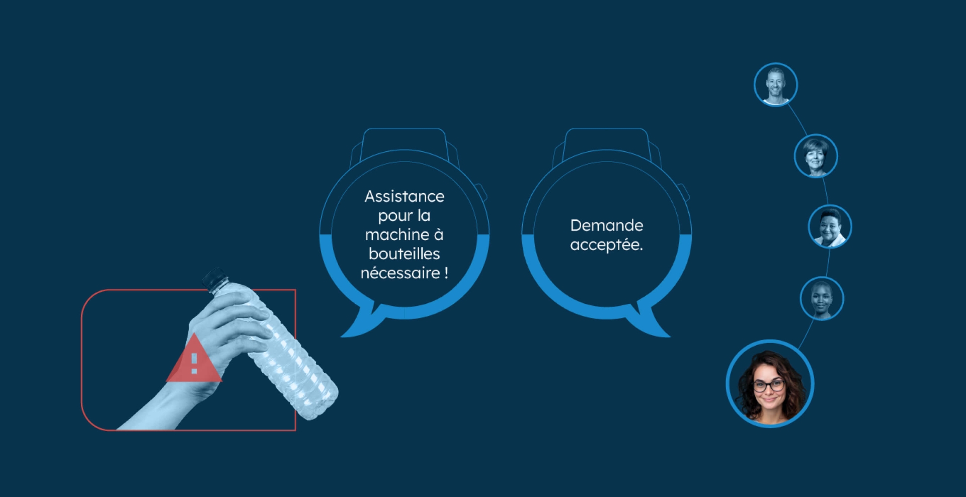 Dès que la machine de collecte des bouteilles est pleine, votre personnel reçoit une notification sur ses appareils cWatch pour la décharger.
